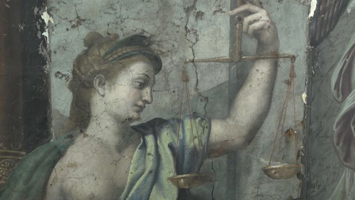 На масляных фресках изображены две женские фигуры, которые специалисты называют воплощением правосудия и дружбы. Чтобы доказать авторство Рафаэля, технику его фресок исследовали инфракрасными и ультрафиолетовыми лучами, сообщает CNN.