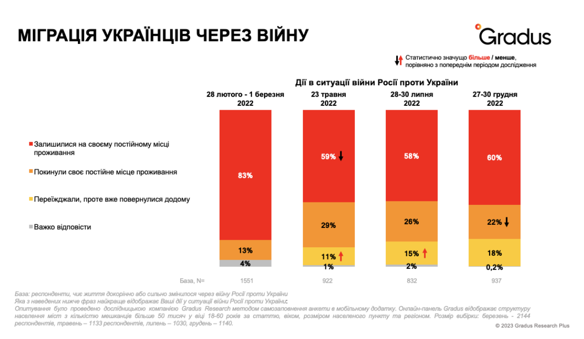 Каждый третий украинец стал мигрантом за 11 месяцев войны. Об этом говорится в исследовании компании Gradus Research.