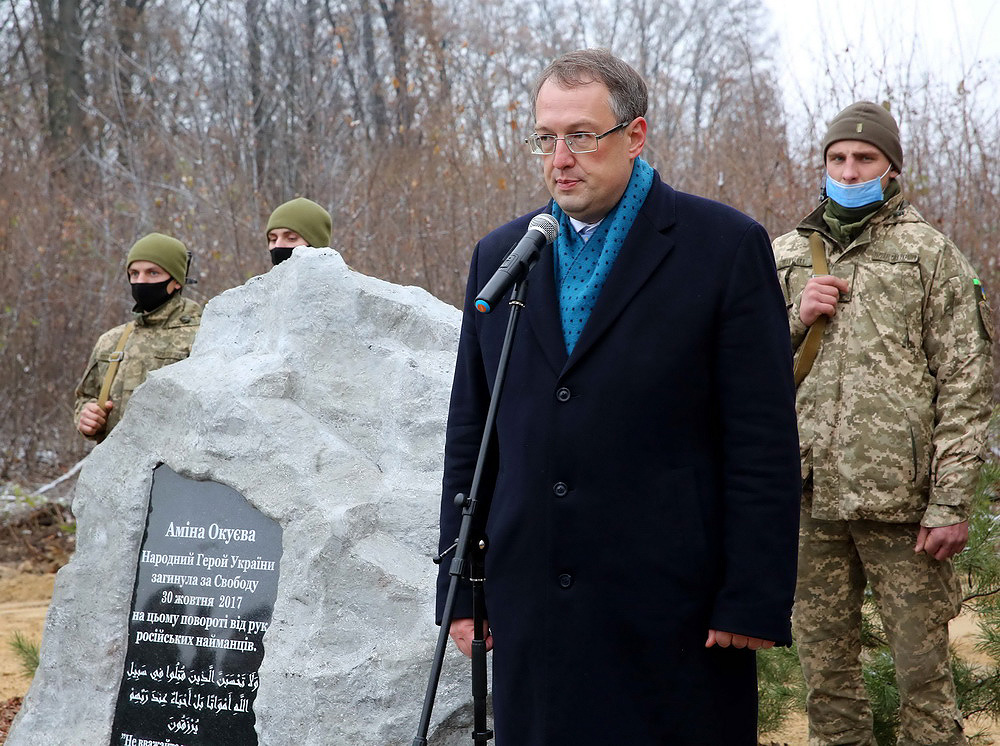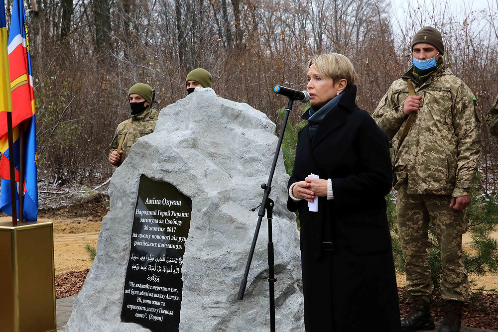 В Киевской области на месте убийства доброволицы Амины Окуевой открыли мемориальный знак.