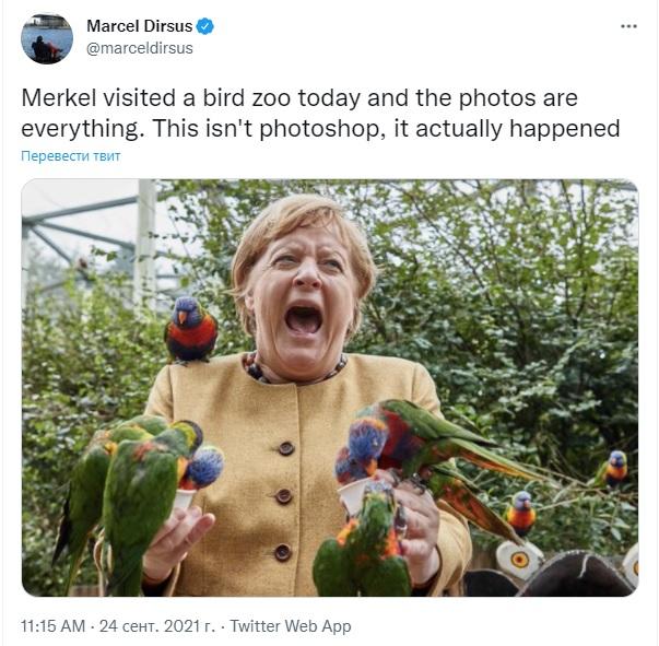 Меркель забавно сфотографировалась с попугаями: кадры разлетелись на мемы