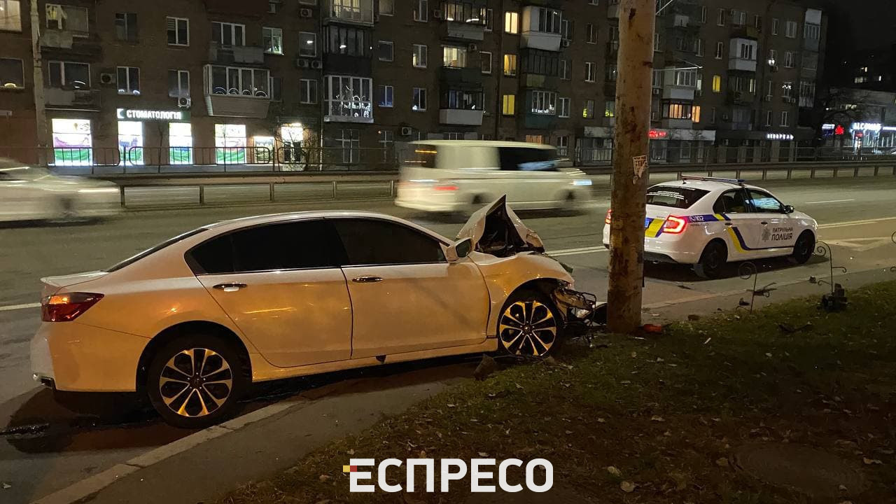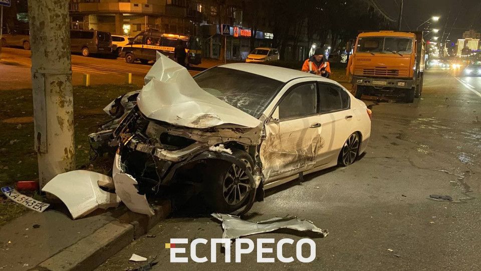 Інцидент стався на перетині проспекта Перемоги та вулиці Шолуденка, пише Еспресо. ДТП імовірно було спричинене тим, що водій Honda намагася обігнати КАМАЗ із правої сторони, але зачепив переднє праве колесо вантажівки та не впорався із керуванням, після чого влетів в електроопору.