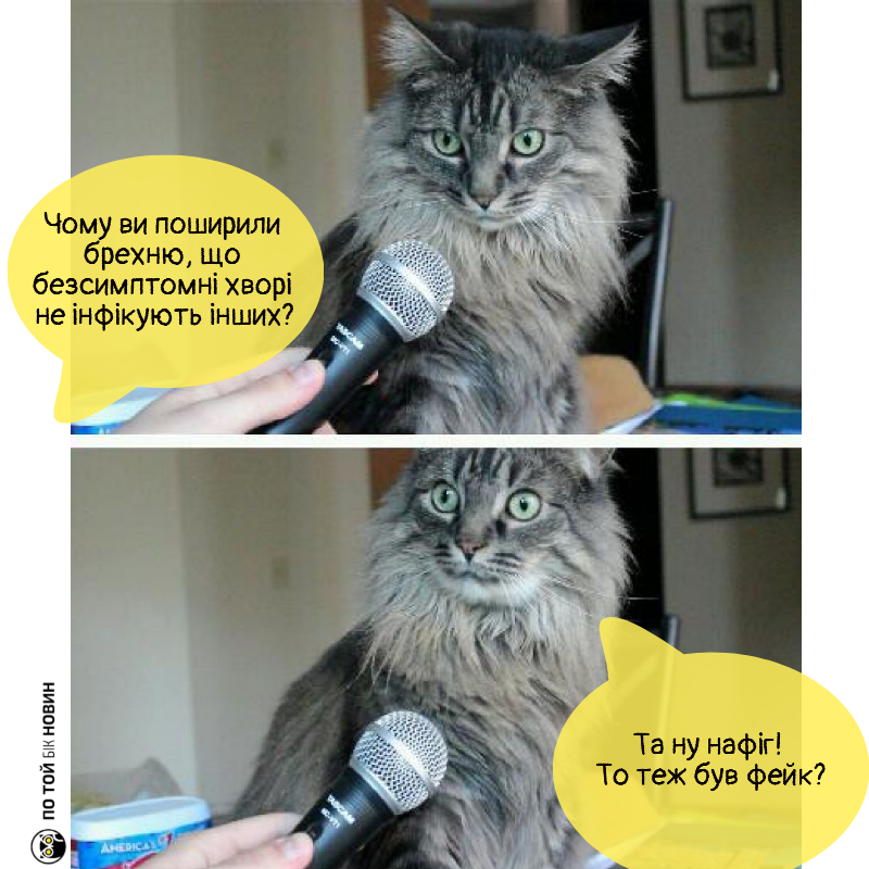 Фейкоробів хлібом не годуй — дай збрехати. Вони миттю перекрутили її слова до невпізнаваності. Мовляв, безсимптомні носії коронавірусу взагалі не заразні. Дехто пішов далі й з легкої руки «вкинув» ще один фейк — «пандемії коронавірусу немає». Отак просто. Брешуть, як дихають.