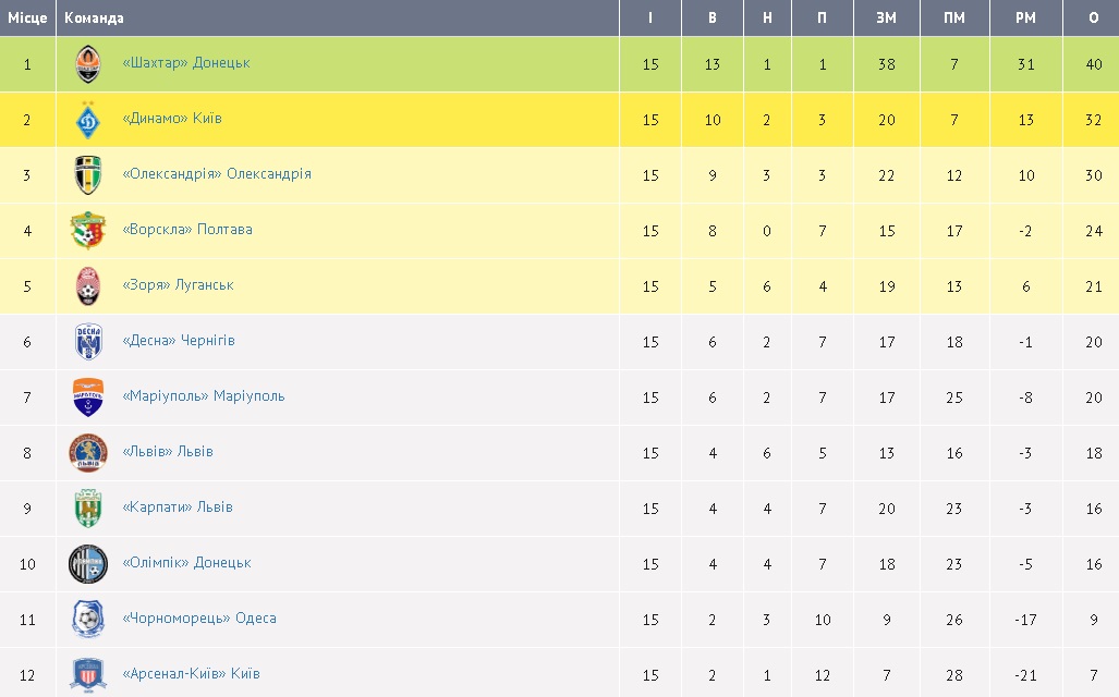 Закінчилися матчі 15-го туру української футбольної прем'єр-ліги.