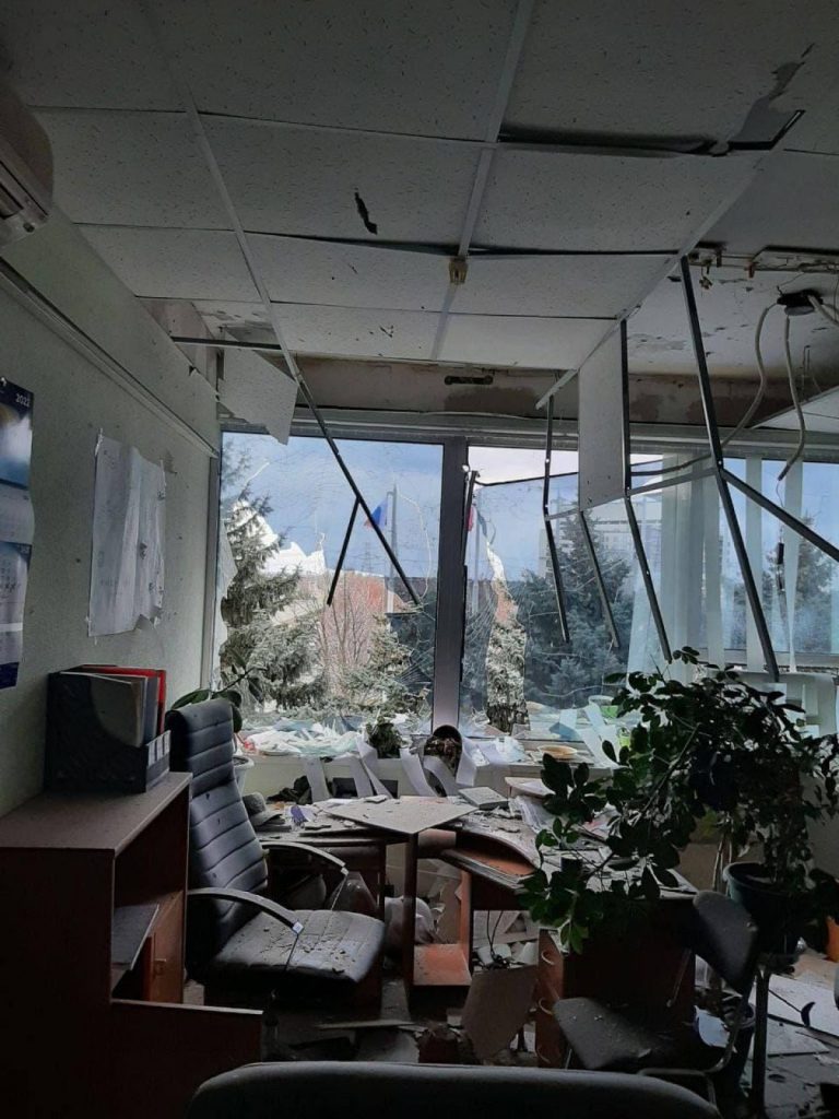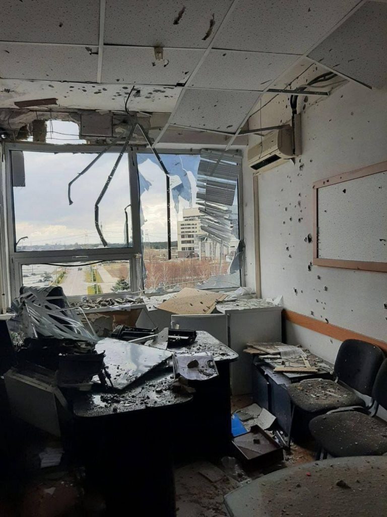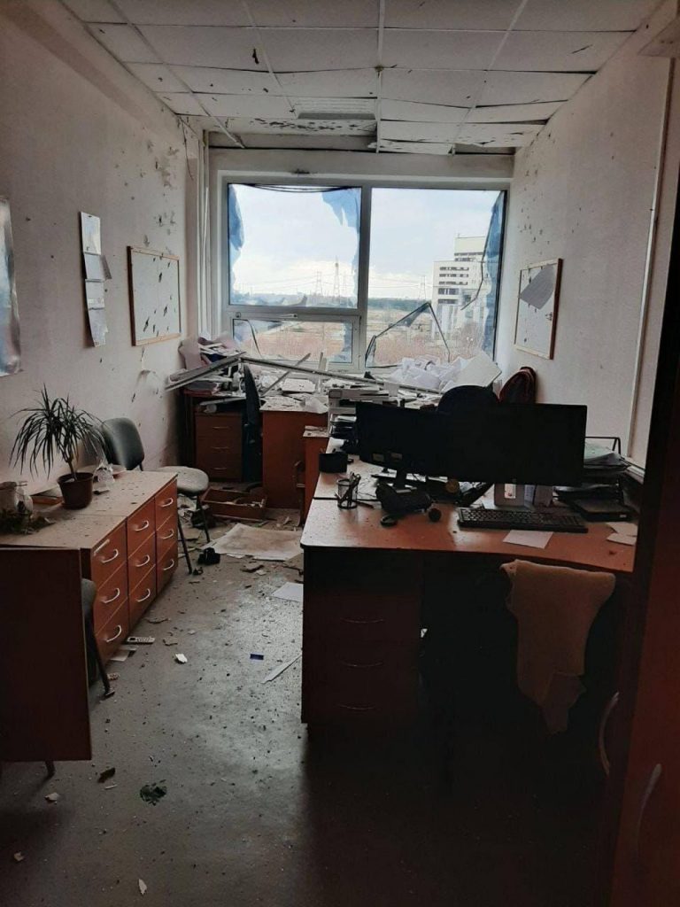 «Енергодар. Україна. 5 березня 2022 року. Наслідки атаки російських загарбників на адміністративний корпус Запорізької АЕС», - йдеться у повідомленні.