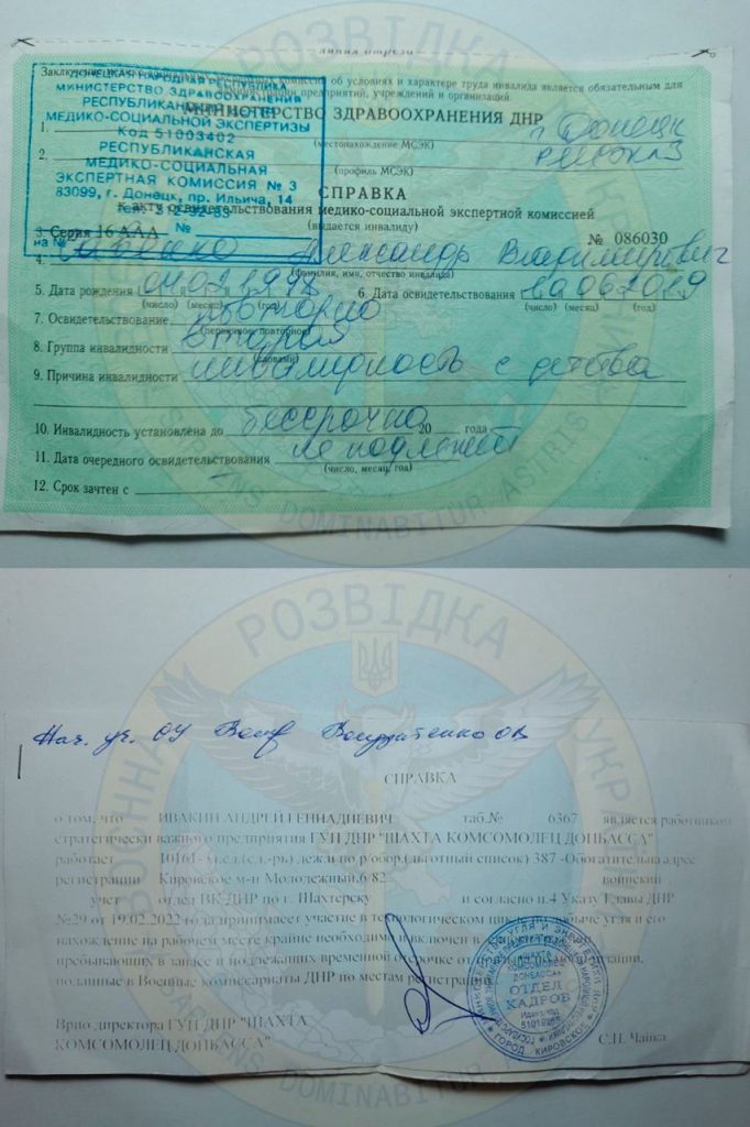 «Документи осіб, що не підлягають призову, було знайдено серед паперів знищеного підрозділу так званої «армії ДНР». Зокрема, Олександра Савенка, інваліда дитинства, який не підлягав військовому призову. Або Андрія Івакіна, співробітнику шахти «Комсомолець Донбасу» із довідкою про те, що він працює на «стратегічно важливому підприємстві». Нікому з них не допомогли отриманні документи й усі назавжди залишились в українській землі»